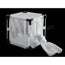 The front panel of BugDorm-4S1515 insect cage is of clear plastic. Centered in the front panel is a sleeve opening (12 cm diameter) for adding or removing insects and replacing food material. On the left-hand side of the opening is an additional clear panel for easy observation of insect activities. Top and remaining two side panels are of Polyester netting (96 x 26 mesh) for ventilation.